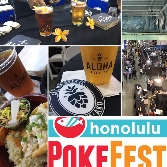 Frolic Hawaii hosted the first ever Honolulu PokeFest on July 22, 2017. My girlfriend Kristine was lucky to win tickets to the event, which included different raw fish poke from over fifteen local restaurants.  At the entrance we picked up a rice bowl and went to town, quickly trying and eating way too much! Located at Pier 11 next to the historic Aloha Tower, we enjoyed our food in the same area used for cruise ship boarding.  I had seen that beer would be available as part of the event and assumed it would be a more usual fare. Kristine kept it a secret that Aloha Beer Company, one of our favorites, was supplying the brews! As part of our tickets, we got to enjoy two each of Kaka’ako Kommon and Aloha Blonde. It was nice to meet ABC’s owner Dave Campbell who was pouring beer for the event. Their table and taps looked great in the black fabric, white logo, and fresh plumeria. With all the richness of the food, it was absolutely necessary to have the perfect beer compliments! Mahalo to Kristine, Frolic, and ABC for a wonderful evening!