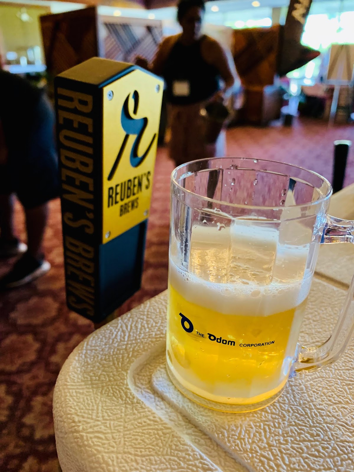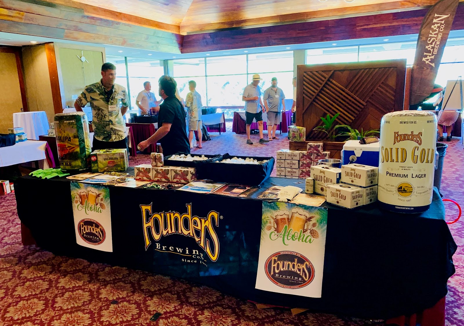 Accompanied by my supportive better half Kristine, we arrived at the beginning of the event and were immediately greeted and welcomed in. The evening had the air of small beer festival, where everyone was interested in the products they were selling or potentially buying. Each brewery had a table with two to four beverage offerings, as well as swag and sale sheets for the initial beers launching in Hawaii. Each was excited to be there and share their product. Almost all of the new breweries displayed the BA Independent Craft Seal, which I was happy to see. Employees of the distributor Odom were also on hand to talk about the company itself.